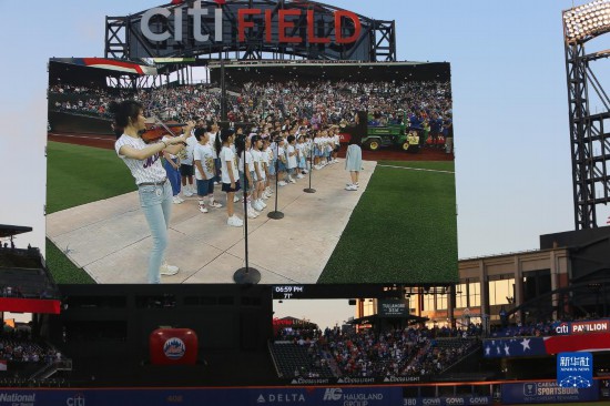 9月1日,在美國紐約大都會(huì)棒球隊(duì)主場花旗球場,兒童合唱團(tuán)在“中華之夜”暨“你好!中國”旅游推廣品牌發(fā)布活動(dòng)結(jié)束后表演。