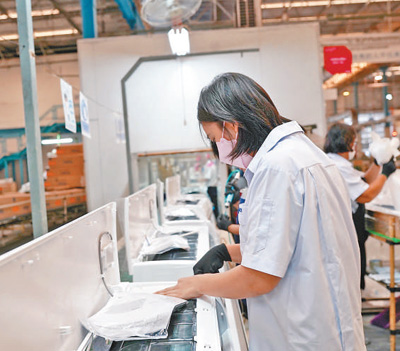 泰國(guó)員工在海爾空調(diào)生產(chǎn)線進(jìn)行操作。