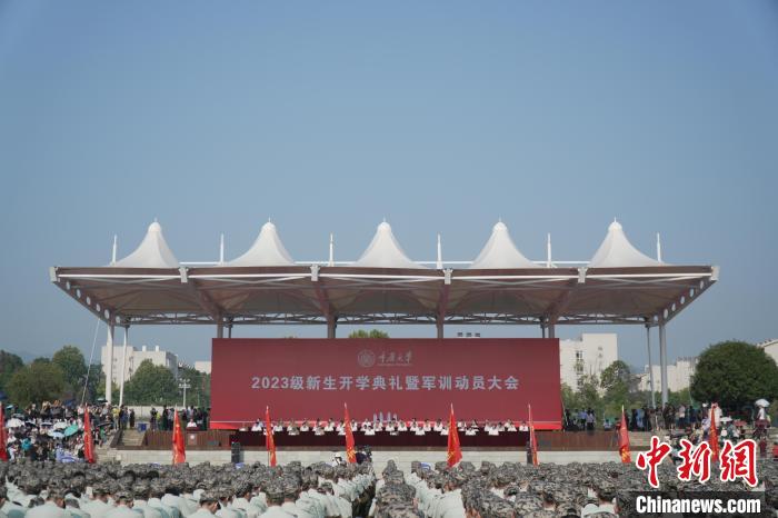 圖為重慶大學(xué)2023級(jí)本科生開學(xué)典禮暨軍訓(xùn)動(dòng)員大會(huì)現(xiàn)場。中新網(wǎng)記者周毅攝