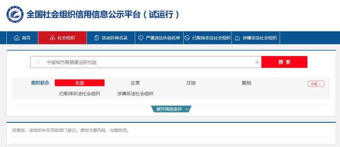 截圖自全國(guó)社會(huì)組織信用信息公示平臺(tái)(試運(yùn)行)網(wǎng)站。