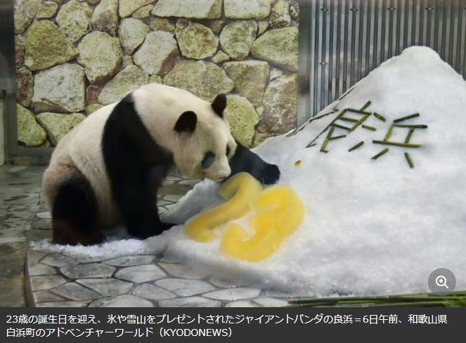 中新網(wǎng)北京9月6日電 據(jù)“日本頭條”網(wǎng)報(bào)道,9月6日,被稱為“熊貓媽媽”的大熊貓“良浜”在位于和歌山縣白濱町的休閑設(shè)施“冒險(xiǎn)大世界”慶祝了自己的23歲生日。