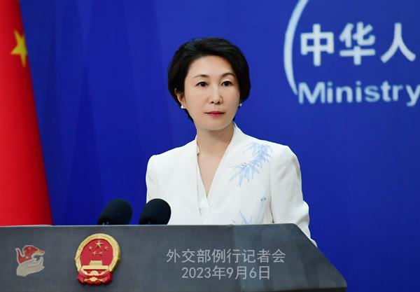 中新網(wǎng)北京9月6日電 (謝雁冰 秦亦姝)中國外交部發(fā)言人毛寧6日主持例行記者會。