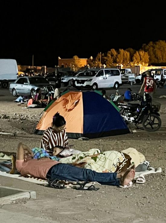 9月9日凌晨,在距離震中200多公里的摩洛哥瓦爾扎扎特市,居民來到戶外避險(手機照片)。新華社記者 王東震 攝
