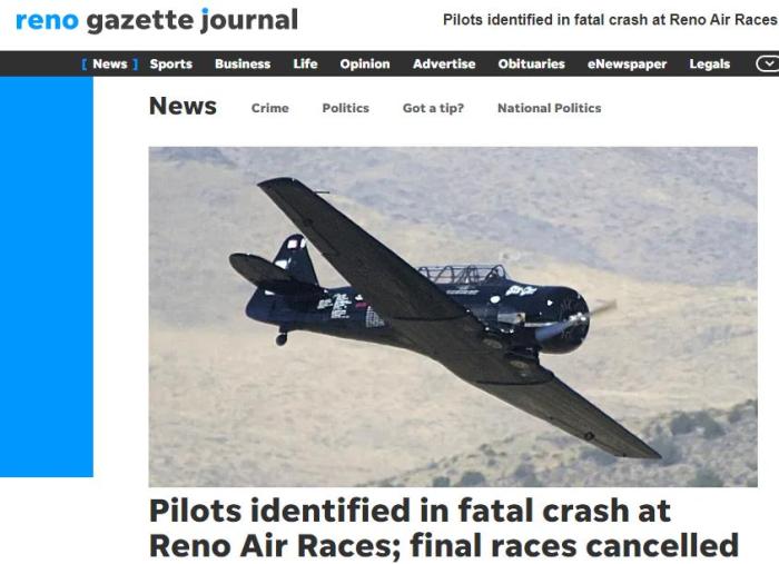 當(dāng)?shù)孛襟w雷諾公報(bào)(Reno Gazette-Journal)報(bào)道稱,遇難的飛行員分別為飛行員克里斯·拉辛和尼克·梅西。據(jù)介紹,拉辛是這次比賽的競(jìng)賽冠軍,名列第一。梅西排名第二。兩名飛行員都來(lái)自加州。