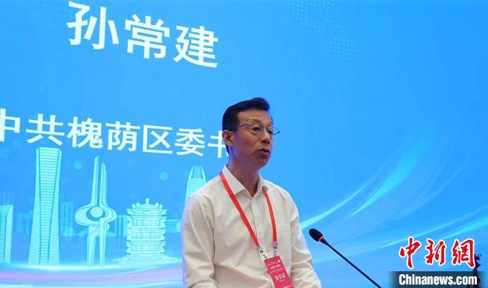 圖為槐蔭區(qū)委書(shū)記孫常建在開(kāi)幕式濟(jì)南會(huì)場(chǎng)上發(fā)表致辭。濟(jì)南市槐蔭區(qū) 供圖