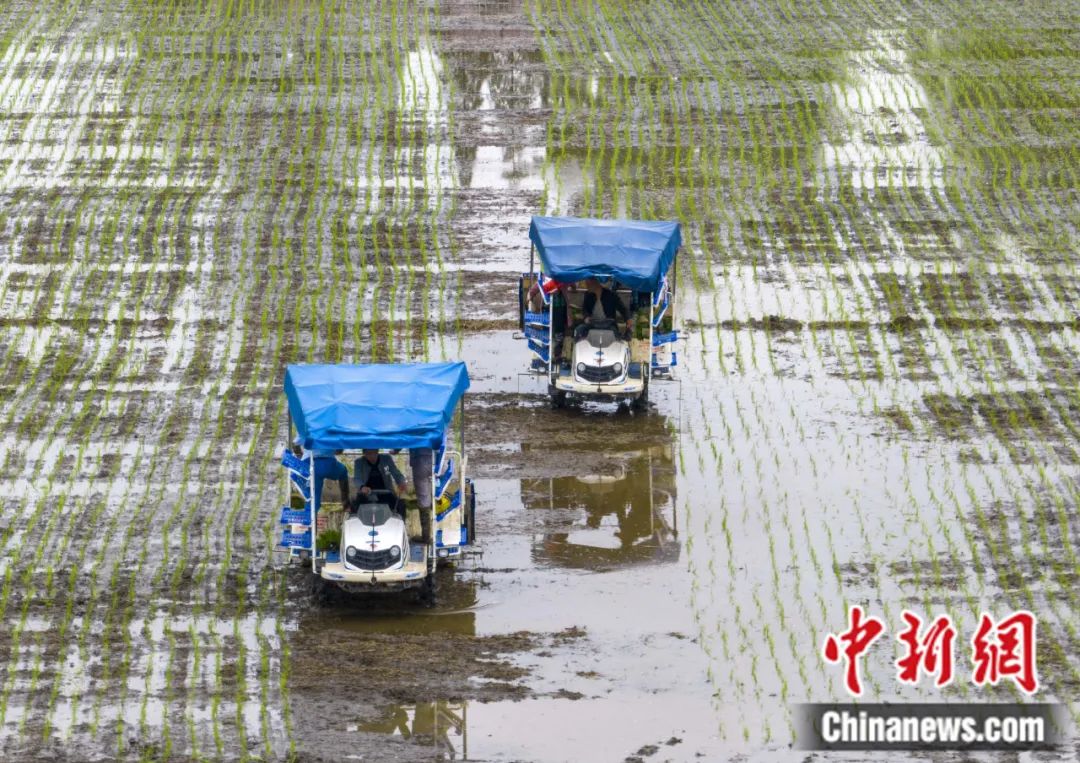 村民駕駛插秧機(jī)在江蘇省泰州市顧高鎮(zhèn)塘橋村栽插水稻秧苗。湯德宏 攝