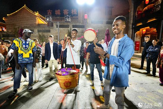 眼花繚亂的民俗表演,沉浸式的古城巡游,絢爛的城樓燈光秀,陶醉的狂歡……9月15日夜晚,在即將結(jié)束山西之行的前夜,2023“漢字緣”國際故事大會決賽的選手們夜游山西省晉城市陽城縣郭峪古城,于燈火闌珊處感受古城中的人間煙火。(人民網(wǎng) 盧鵬宇攝)