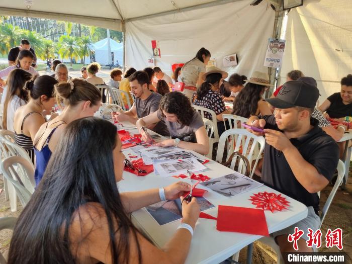 當(dāng)?shù)貢r間9月16日,坎皮納斯市民在當(dāng)?shù)仄咸蜒拦珗@體驗中國剪紙、書法、制作燈籠等文化活動??财ぜ{斯大學(xué)孔院供圖