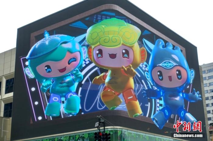 資料圖:4月1日,亞運吉祥物裸眼3D宣傳片在杭州市西湖區(qū)文三數(shù)字生活街區(qū)開播。中新社記者 錢晨菲 攝