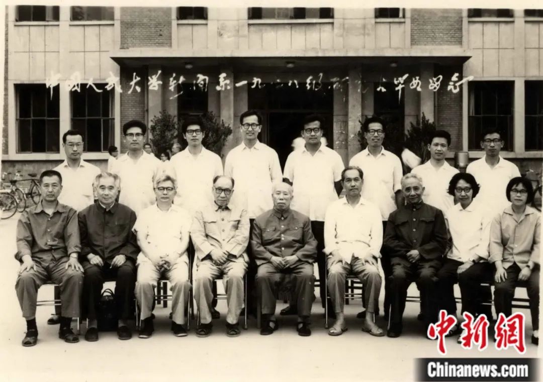 1981年,中國人民大學(xué)新聞系1978級(jí)研究生畢業(yè)留念。前排左三為方漢奇。中國人民大學(xué)新聞學(xué)院供圖