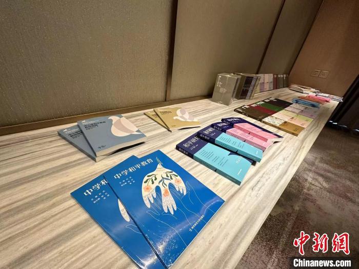 論壇上展示的南京中小學和平教育教材?!∩耆?攝