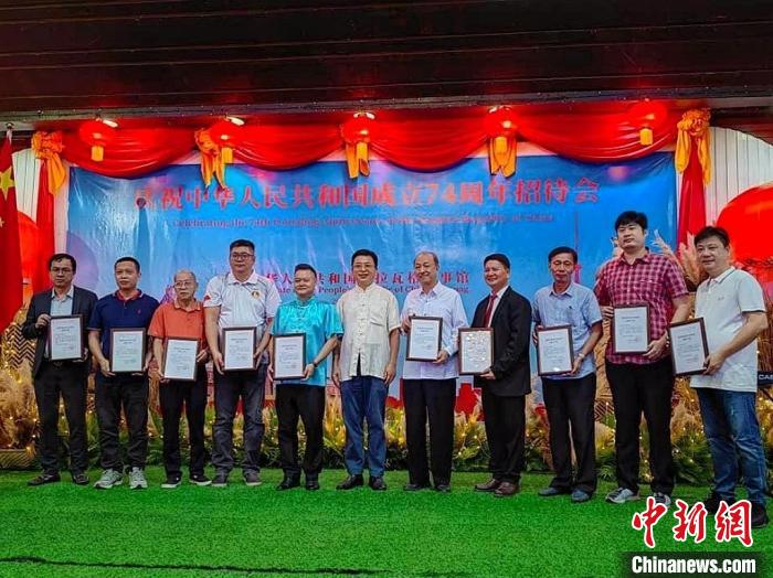 圖為招待會(huì)現(xiàn)場(chǎng)舉行領(lǐng)事保護(hù)志愿者頒獎(jiǎng)儀式。中國(guó)駐拉瓦格領(lǐng)事館供圖