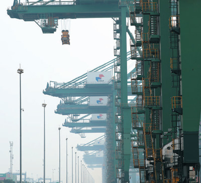 依托天津港的區(qū)位優(yōu)勢,海鐵聯(lián)運成為天津中歐班列的特色。圖為9月18日,天津港集裝箱岸橋作業(yè)現(xiàn)場。