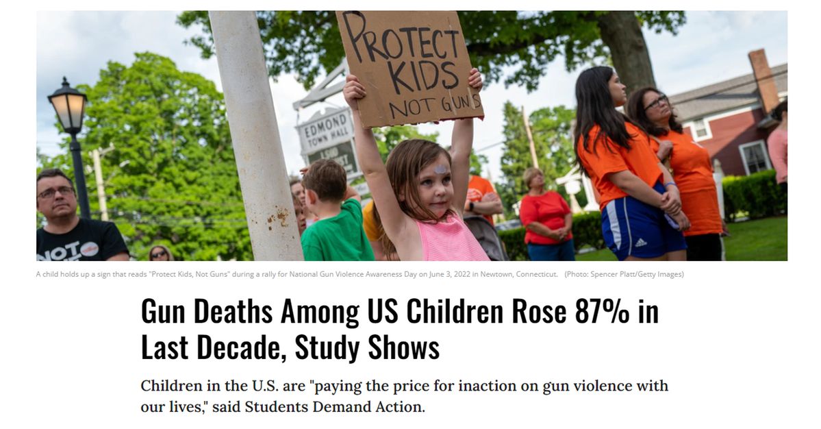 文章援引“槍支暴力檔案”(Gun Violence Archive)的數(shù)據(jù)稱,今年到目前為止,美國已有1300多名兒童和青少年死于槍支,而美國疾病控制與預防中心(CDC)在4月份發(fā)現(xiàn),在2019年至2021年的短短兩年內(nèi),兒童涉槍死亡人數(shù)上升了50%。
