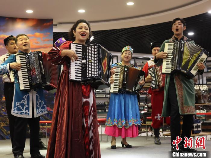 近日,記者走進(jìn)伊寧市六星街,由錫伯族、哈薩克族、俄羅斯族、漢族、維吾爾族等音樂愛好者組成的手風(fēng)琴樂隊(duì)正在表演?!≈行律缬浾?薄雯雯 攝