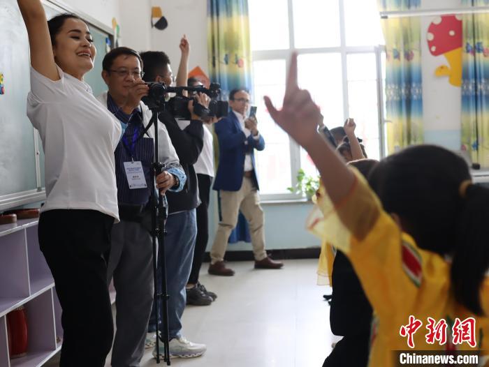 近日,泰國(guó)記者協(xié)會(huì)主席孟孔(左二)走進(jìn)喀什地區(qū)疏附縣吾庫薩克鎮(zhèn)七村學(xué)校參訪。 中新社記者 薄雯雯 攝