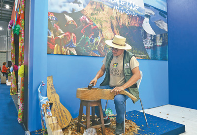 來自巴西里約州帕拉蒂市的多種口味甘蔗酒,現場制作的馬托格羅索州特色中提琴(見圖,本報記者時元皓攝),帕拉伊巴州的舞者身著傳統(tǒng)服飾翩翩起舞……近日,在里約會展中心舉行的第五十屆巴西旅行社協(xié)會博覽會上,來自巴西多個州、市的文旅部門和旅行社展示了豐富的特色商品和地方民俗文化,吸引大批參觀者駐足體驗。