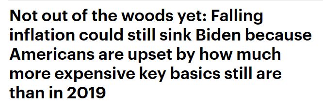 報(bào)道援引美國數(shù)字新聞網(wǎng)站(Axios)的民調(diào)稱,美國民眾對本國經(jīng)濟(jì)的看法十分糟糕。這其中很重要的原因就是,民眾在日常生活中更關(guān)注所需商品的絕對價(jià)格,而這一價(jià)格目前依然過高。盡管近期美國通脹率有所下降,但商品價(jià)格還在上漲,只是比以前稍慢了一些。