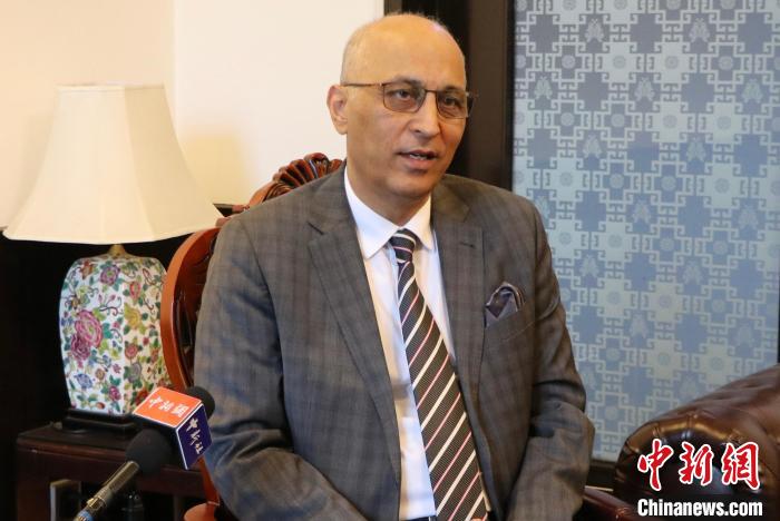 近日,巴基斯坦駐華大使莫因·哈克(Moin Ul Haque)接受中新社專訪。 (巴基斯坦駐華使館供圖)