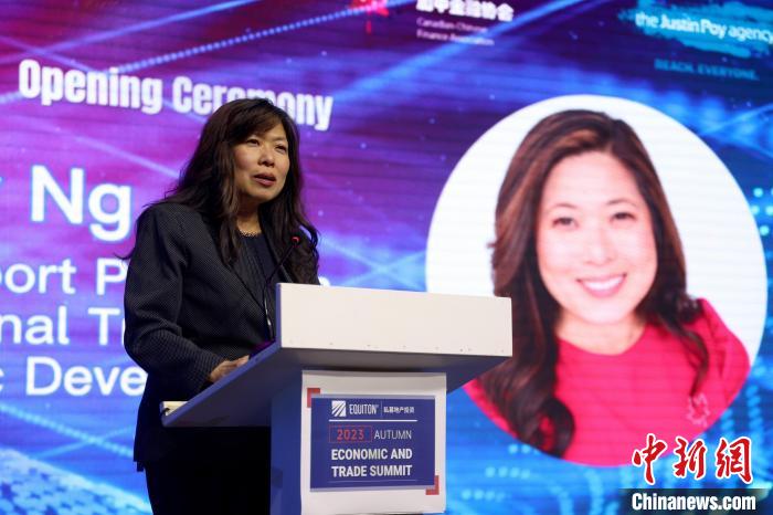 當(dāng)?shù)貢r(shí)間10月11日,加拿大多倫多,加拿大出口促進(jìn)、國際貿(mào)易和經(jīng)濟(jì)發(fā)展部長伍鳳儀在多倫多出席當(dāng)日開幕的2023秋季經(jīng)貿(mào)論壇時(shí)表示,加政府正繼續(xù)在全球各地商談、拓展貿(mào)易協(xié)議。記者 余瑞冬 攝