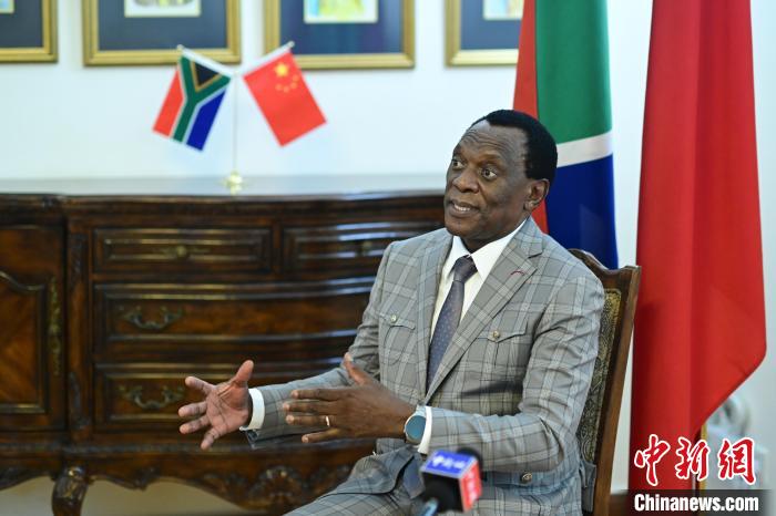 南非駐華大使謝勝文近期在北京接受中新社記者專訪,介紹南中、非中共建“一帶一路”成果。 中新社記者 田雨昊 攝