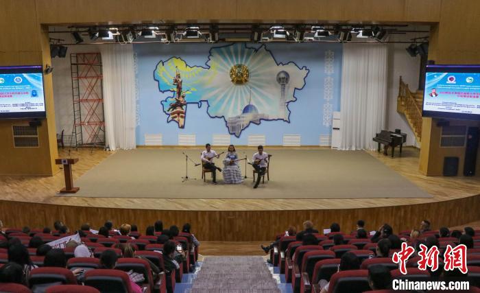 此外,還有學生以唱歌形式解讀阿拜詩歌中傳達出的哲學思考,更有選手將表演與詩歌朗誦進行有機結(jié)合,巧妙展現(xiàn)了阿拜詩歌所蘊含的深刻內(nèi)涵。不僅如此,賽間還有大學藝術團不間斷的表演助興,冬不拉彈唱、中文歌曲演唱、小提琴、哈薩克舞蹈等節(jié)目,令現(xiàn)場氣氛熱烈,掌聲不斷。