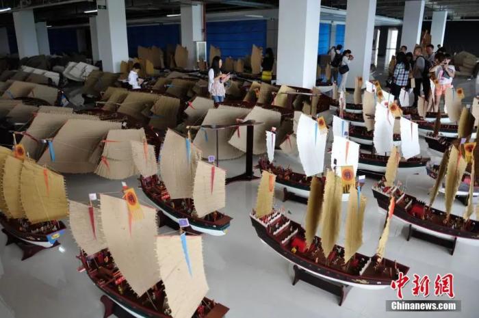 資料圖:著名探險家金飛豹“復(fù)原”的鄭和艦隊。中新社發(fā) 劉冉陽 攝