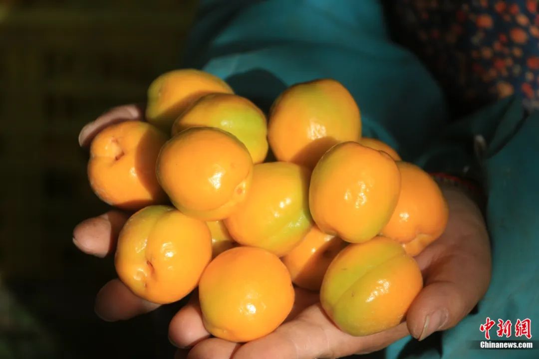 敦煌農(nóng)民采摘紫胭桃。張曉亮 攝