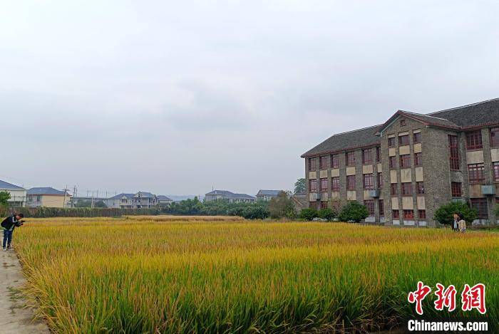 10月13日,安江農校紀念園內,袁隆平曾發(fā)現(xiàn)水稻“天然雄性不育株”的試驗田里,金黃的稻穗隨風搖曳。這里如今仍是科研人員開展雜交水稻研究的“陣地”。中新社記者 鄧霞 攝