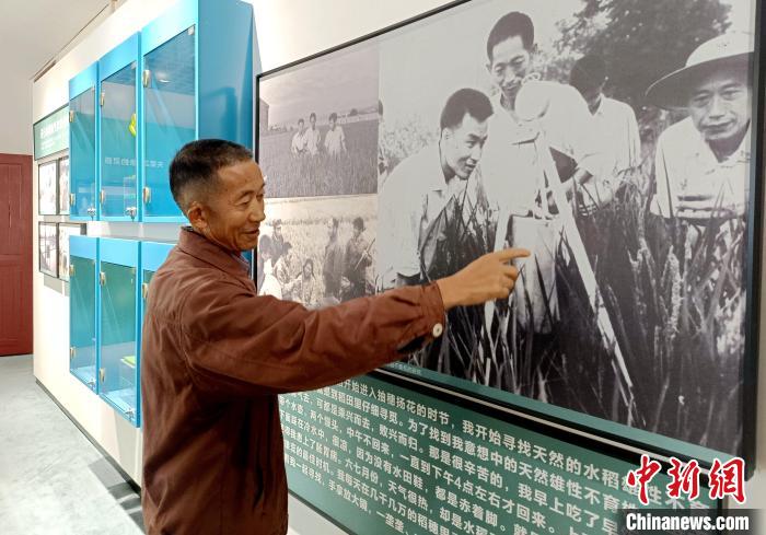 10月13日,在安江農校紀念園內的雜交水稻發(fā)源地紀念館,袁隆平的學生宋澤觀講述袁隆平及其團隊研究雜交水稻的故事。中新社記者 鄧霞 攝