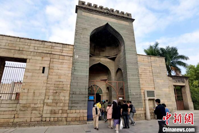 10月4日,仿大馬士革禮拜寺建筑的泉州清凈寺,吸引游客前來(lái)參觀?!≈行律缬浾?孫虹 攝