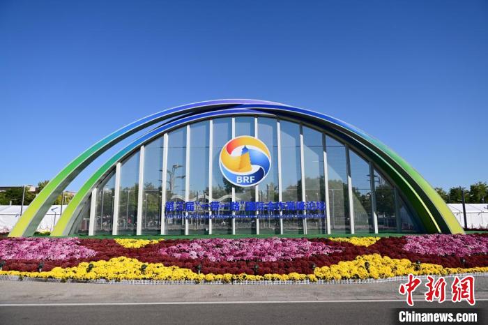 10月15日,北京,國家會議中心外的第三屆“一帶一路”國際合作高峰論壇景觀布置。當日,位于國家會議中心的第三屆“一帶一路”國際合作高峰論壇新聞中心啟動試運行。 中新社記者 田雨昊 攝