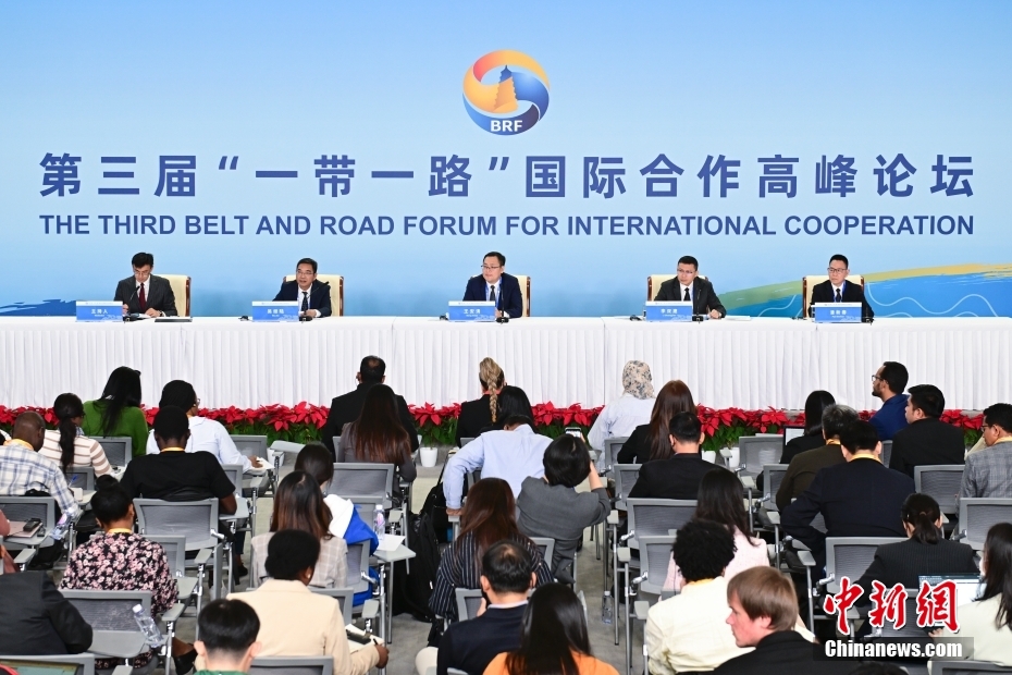 10月16日,第三屆“一帶一路”國(guó)際合作高峰論壇新聞中心在位于北京的國(guó)家會(huì)議中心舉行首場(chǎng)吹風(fēng)會(huì),邀請(qǐng)自然資源部國(guó)際合作司和相關(guān)單位負(fù)責(zé)人介紹有關(guān)情況,并回答記者提問(wèn)。圖為吹風(fēng)會(huì)現(xiàn)場(chǎng)。 中新社記者 田雨昊 攝