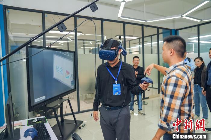 10月12日,柬埔寨青年代表在廣西桂林一家科技企業(yè)體驗(yàn)VR技術(shù)。中國(廣西)國際青年交流學(xué)院供圖