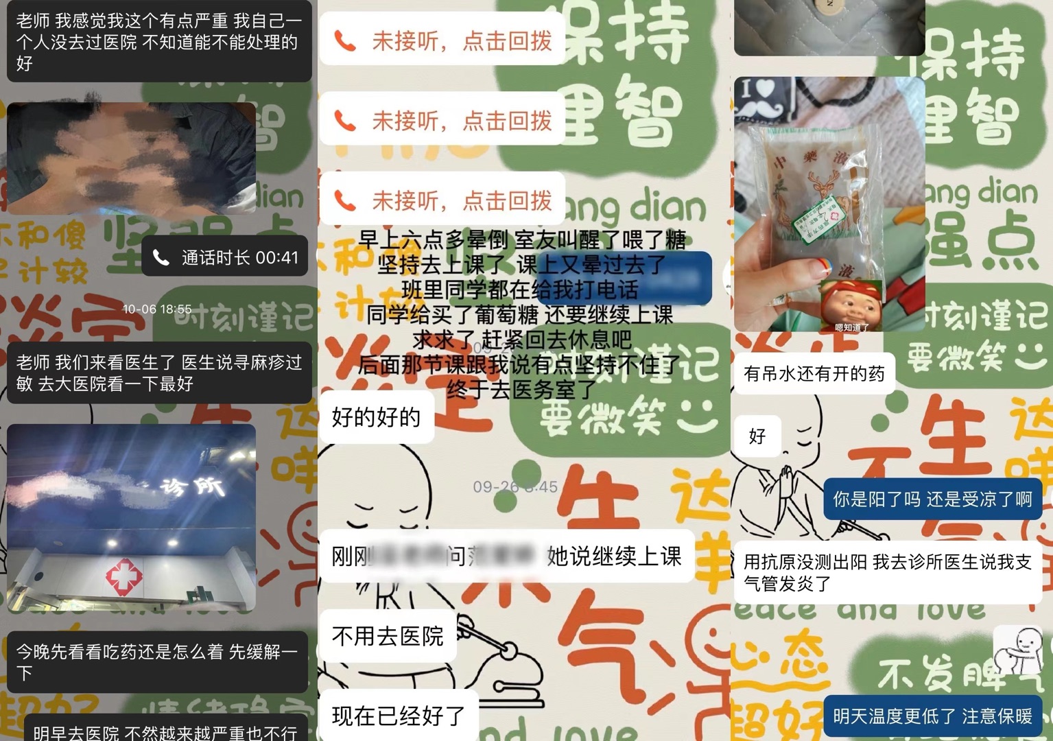 每周都會有因生病請假的大學生。受訪者供圖