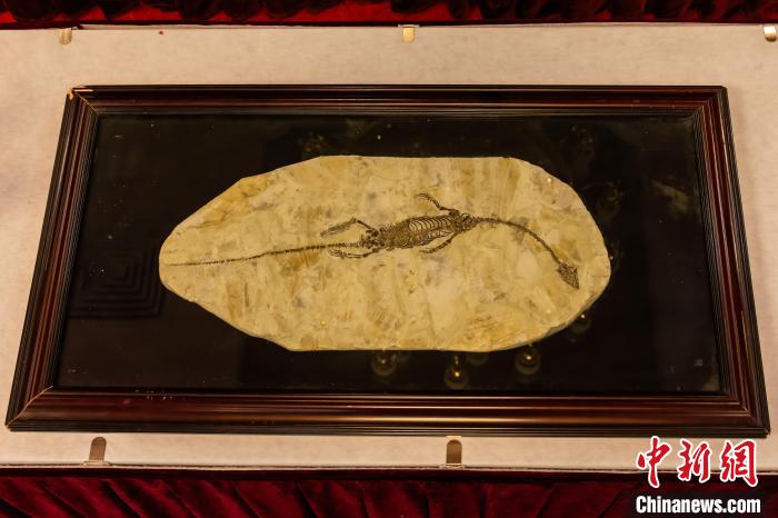 中國駐澳大利亞大使館舉行儀式,接收澳方向我國返還共4件流失文物藝術品與1件古生物化石。圖為晚侏羅世至早白堊世潛龍化石?!椅奈锞止﹫D