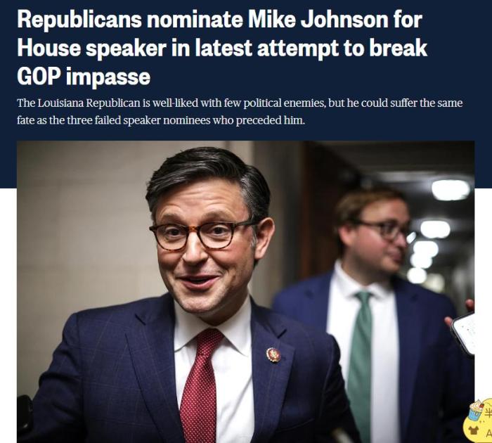 法新社還指出,約翰遜是共和黨在大約兩周內(nèi),所提名的第四位眾議院議長候選人,凸顯這個(gè)“分裂的”的政黨陷入了混亂。