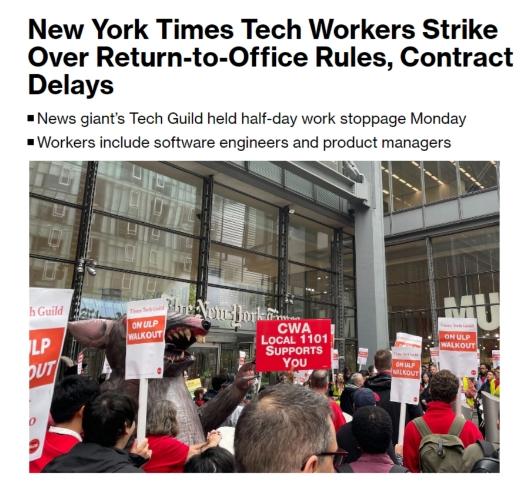 據(jù)了解,《紐約時(shí)報(bào)》的員工們與其管理層的合同談判已持續(xù)了15個(gè)月,他們指責(zé)管理層一直在拖延談判進(jìn)程,并試圖限制他們在家辦公的能力。