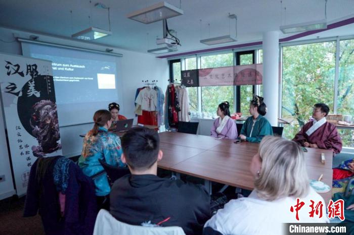 中新網(wǎng)柏林10月28日電 由漢景帝陽陵博物院主辦的“漢服之美·漢文化藝術(shù)體驗(yàn)課程”活動(dòng)近日在柏林的漢文化藝術(shù)交流中心講堂(體驗(yàn)館)舉辦,數(shù)十名來自德國(guó)柏林的年輕漢文化愛好者與中國(guó)講師共同參與了活動(dòng)。
