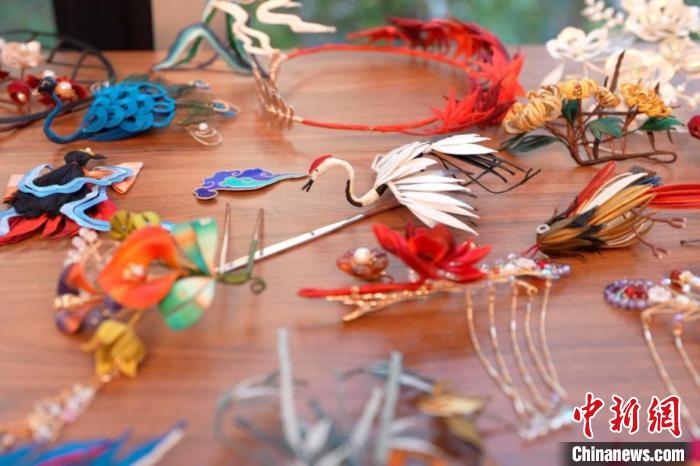 圖為活動(dòng)展示的部分中國(guó)傳統(tǒng)發(fā)簪配飾。漢文化藝術(shù)交流中心供圖