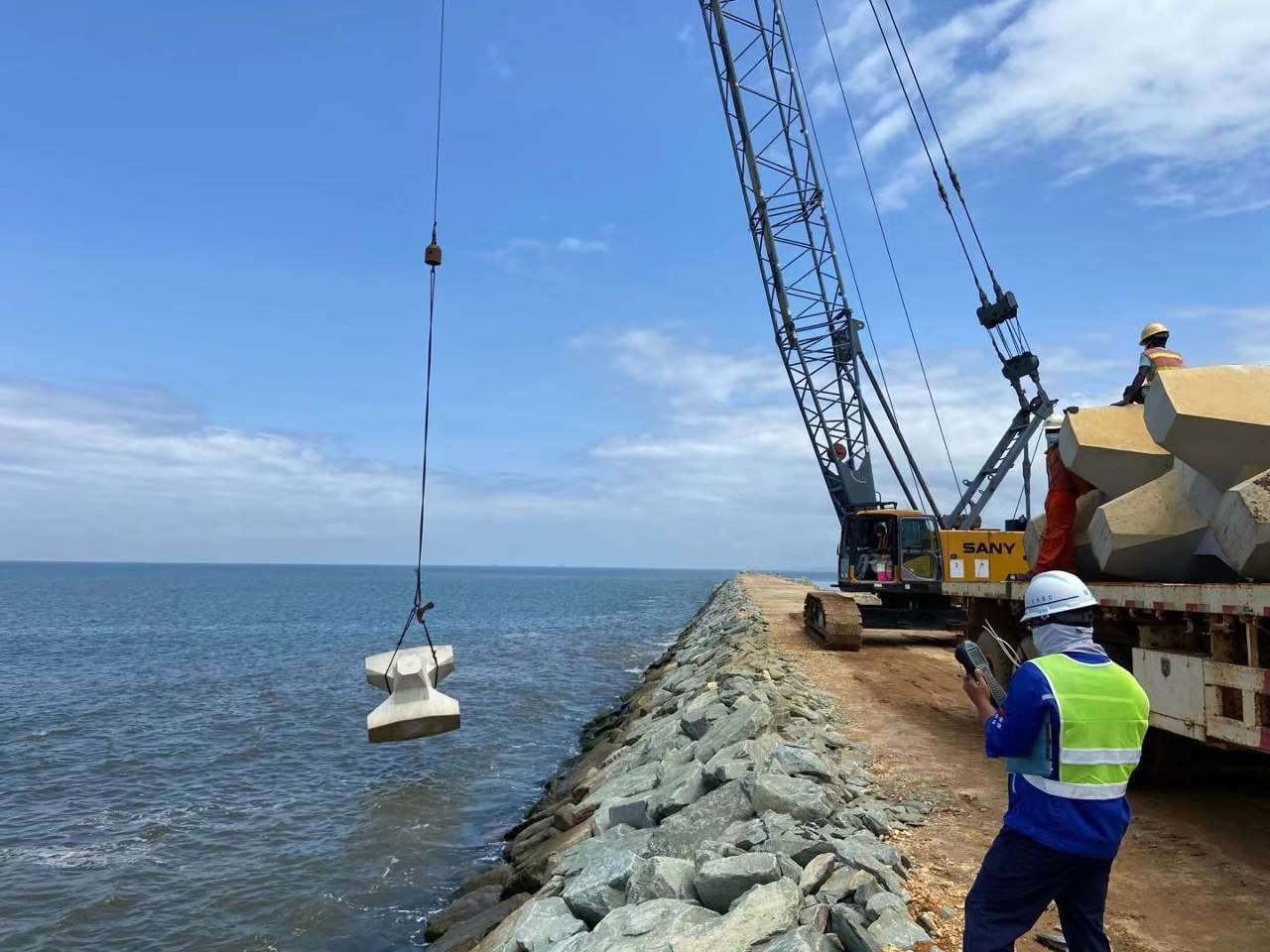 卡約新港口項(xiàng)目位于安哥拉卡賓達(dá)省,由中國進(jìn)出口銀行提供買方信貸資金,由中國路橋工程有限責(zé)任公司以EPC總承包方式實(shí)施。項(xiàng)目包括新建深水港口工程、港口設(shè)備的采購,以及與港口港區(qū)配套的自貿(mào)區(qū)及相關(guān)設(shè)施建設(shè)。港口工程的主要部分是在近岸水域新建一個離岸式700米長的集裝箱和散雜貨碼頭,背后形成吹填堆場,還包括引堤、引橋和陸域設(shè)施,形成了一個功能齊全的大型深水港口,設(shè)計(jì)年吞吐量達(dá)580萬噸。王棟表示,卡約新港口項(xiàng)目已完成超過40%的工程,預(yù)計(jì)將于2025年年底竣工。這個項(xiàng)目不僅代表著中國企業(yè)的高水平工程實(shí)施,還體現(xiàn)了中安兩國在“一帶一路”框架下的密切合作。