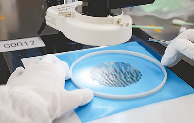 福建省福州高新技術(shù)產(chǎn)業(yè)開(kāi)發(fā)區(qū)一芯片生產(chǎn)車間,工作人員在檢測(cè)芯片產(chǎn)品。