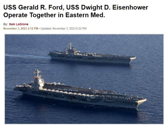 中新網(wǎng)11月4日電 綜合外媒報(bào)道,美國(guó)第六艦隊(duì)當(dāng)?shù)貢r(shí)間3日宣布,過(guò)去三天里,美國(guó)海軍在東地中海舉行雙航母演習(xí)。