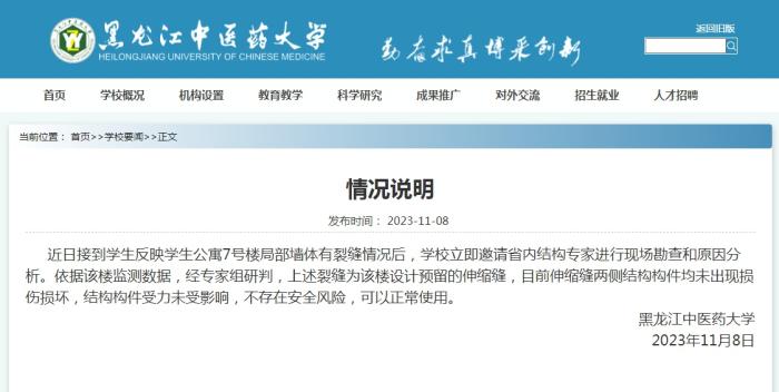 黑龍江一大學(xué)學(xué)生公寓墻體開(kāi)裂?官方:不存在安全風(fēng)險(xiǎn)