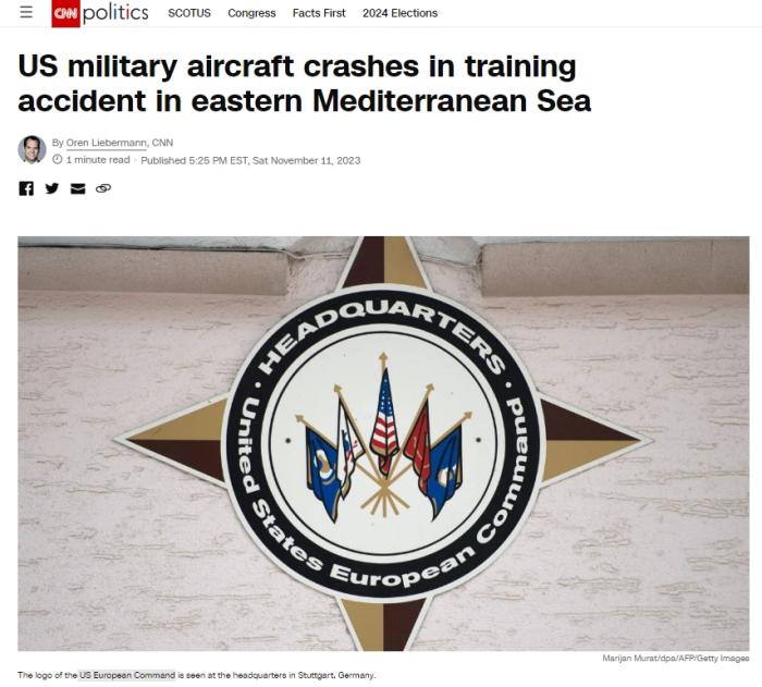 中新網(wǎng)11月12日電 據(jù)美國有線電視新聞網(wǎng)(CNN)報道,美國歐洲司令部當(dāng)?shù)貢r間11日表示,一架美國軍用飛機在地中海東部墜毀。