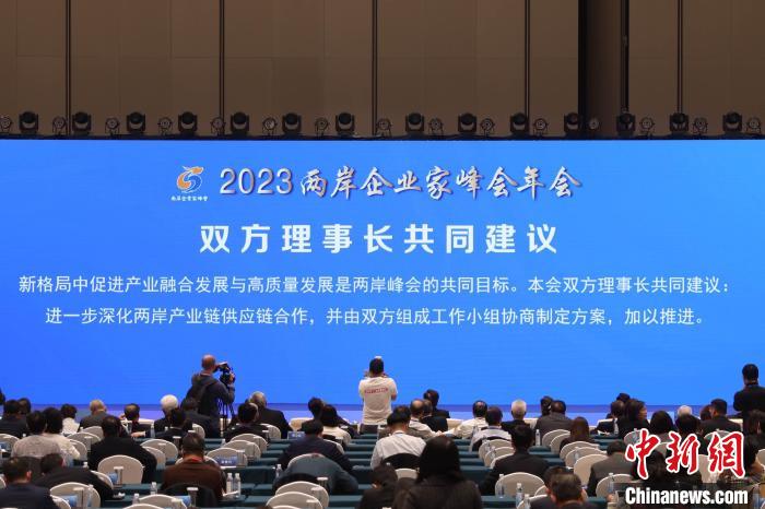 兩岸企業(yè)家峰會大陸方面秘書長林軍宣讀共同建議。林軍表示,新格局中促進(jìn)產(chǎn)業(yè)融合發(fā)展與高質(zhì)量發(fā)展是兩岸峰會的共同目標(biāo)。本會雙方理事長共同建議:進(jìn)一步深化兩岸產(chǎn)業(yè)鏈供應(yīng)鏈合作,并由雙方組成工作小組協(xié)商制定方案,加以推進(jìn)。