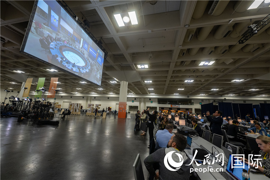 當地時間11月16日,美國舊金山,在APEC國際媒體中心,媒體記者忙碌工作。