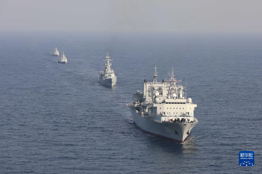 中巴“海洋衛(wèi)士-3”海上聯(lián)合演習(xí)在阿拉伯海北部海空域舉行,雙方艦艇組織編隊運(yùn)動(11月14日攝)。新華社發(fā)(姜霞攝)
