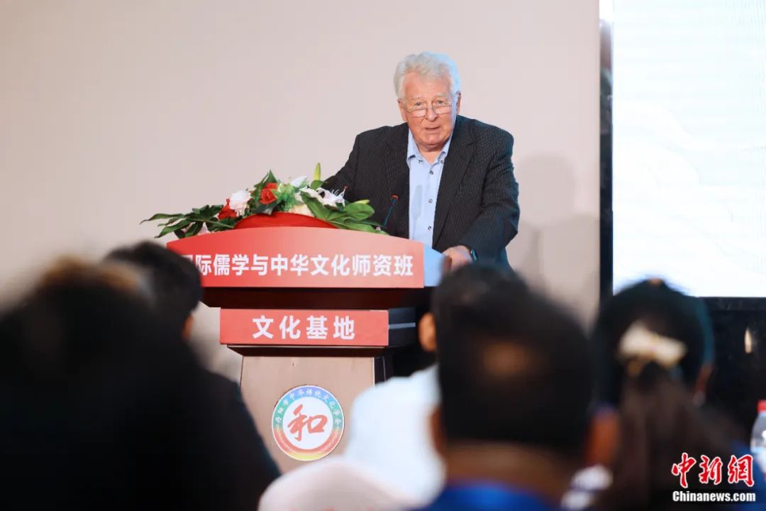 2023年8月14日,中西比較哲學(xué)家安樂(lè)哲在活動(dòng)現(xiàn)場(chǎng)致辭。李國(guó)慶 攝