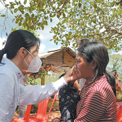 2022年3月,由中國中醫(yī)科學院西苑醫(yī)院醫(yī)生為主體的中國援柬中醫(yī)醫(yī)療隊抵達柬首都金邊,開始為期1年的醫(yī)療服務工作。今年1月,醫(yī)療隊來到桔井省,為當?shù)孛癖娺M行義診,許多人慕名前來檢查身體?!奥牬謇锶苏f,中國醫(yī)療隊的口碑非常好,治好了很多患者,我就想帶女兒去試試?!蓖⒍U達的母親孔吉棉告訴記者。